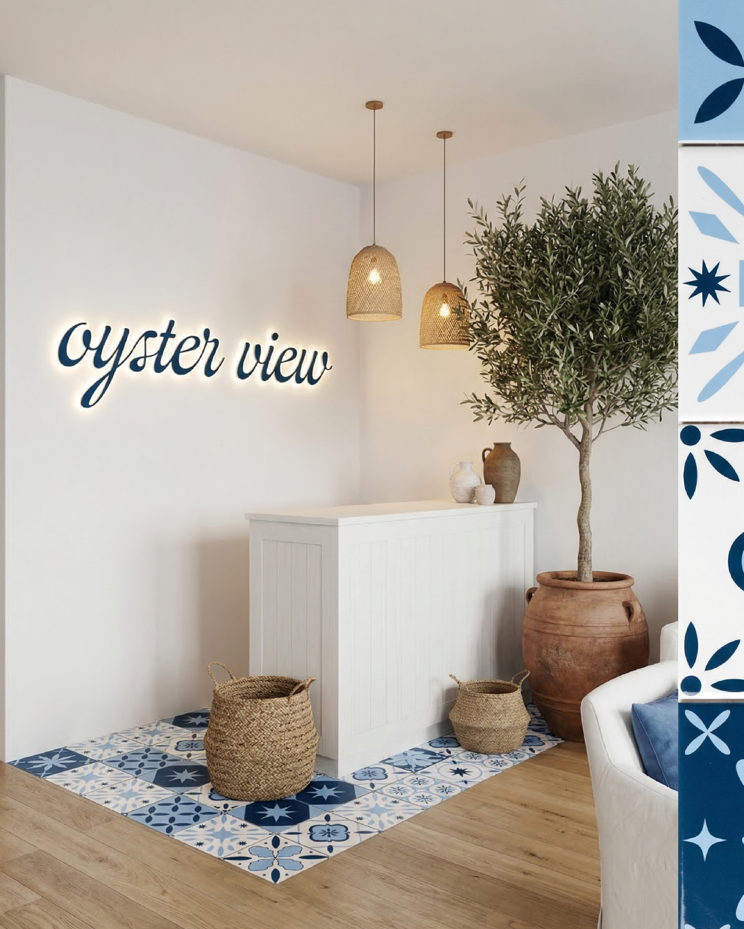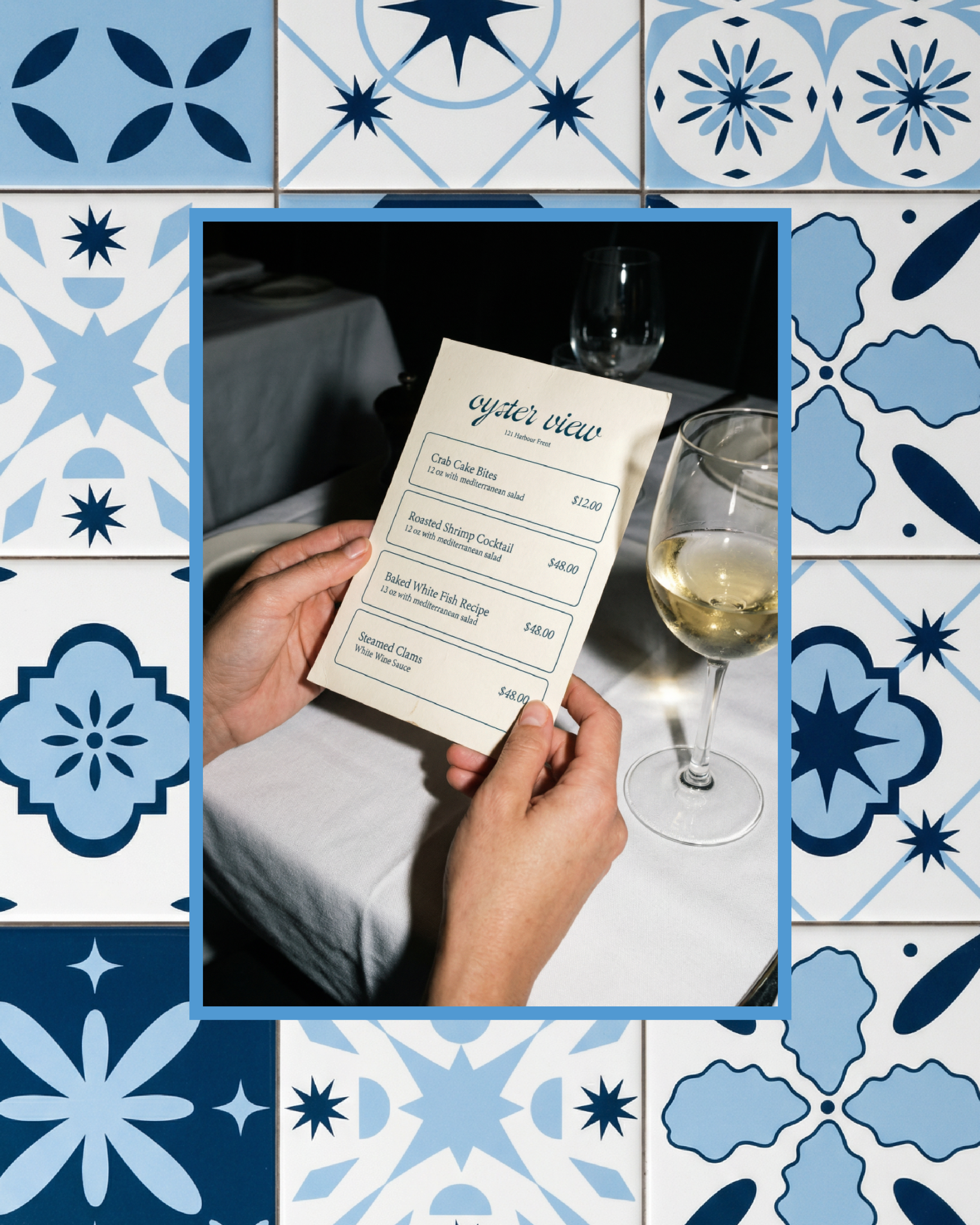 Oystery View is a passion project that allowed me to explore how design can bring a restaurant’s story to life. Nestled on a beautiful California beach, the restaurant combines the relaxed, sun-soaked vibes of the coast with the vibrant, timeless energy of the Mediterranean.